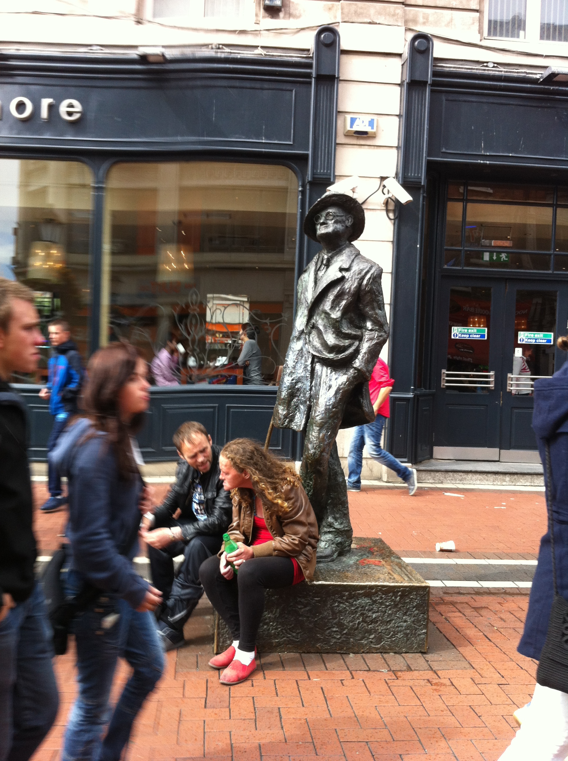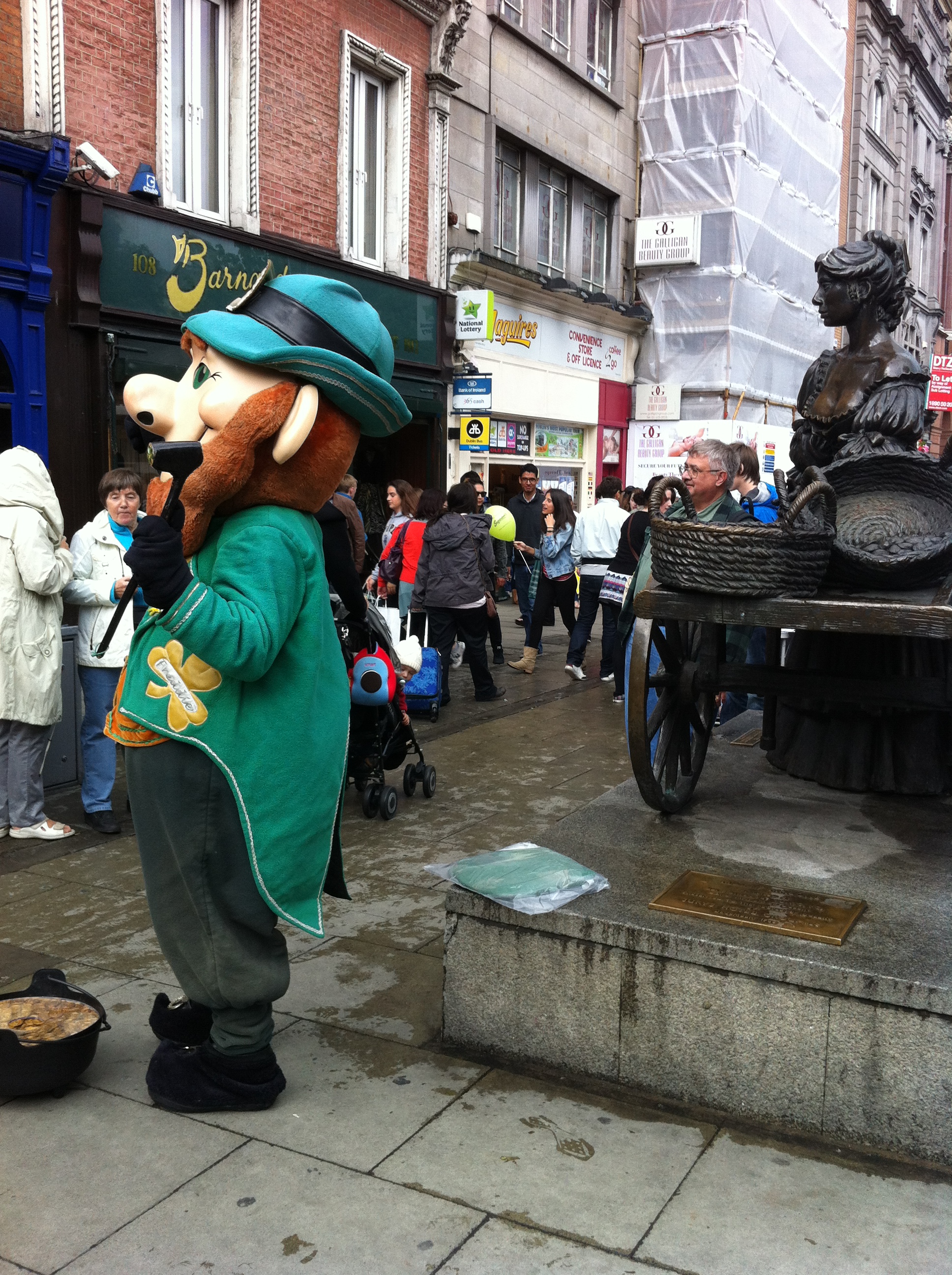 Auf bemerkenswerte Weise hat sich die Republik Irland dieses Antagonismus enthoben. Buddy-Bären-Kühe oder, wie man denken könnte, meterhohe Plastikharfen findet man dort im öffentlichen Raum vorläufig nicht. Statt dessen stösst man in jedem noch so kleinen Kaff auf mindestens ein Exemplar dessen, was man mit der Gattungsbezeichnung „Sentimental Sculpture“ bezeichnen könnte. Es handelt sich dabei um etwas überlebensgrosse Bronzefiguren, die mit kleinen künstlerischen Stilabweichungen eine reale oder fiktive Persönlichkeit des Stadtlebens präsentieren. Sämtliche Exemplare wie Molly Malone oder James Joyce in Dublin zum Beispiel sind in den vergangenen zehn Jahren aufgestellt worden, genrehafte Wohlfühlkonterfeis mit Wiedererkennungswert, die das Publikum bei seinen Erwartungen abholen. Man posiert feixend, zückt den Fotoapparat und geht befriedig weiter.