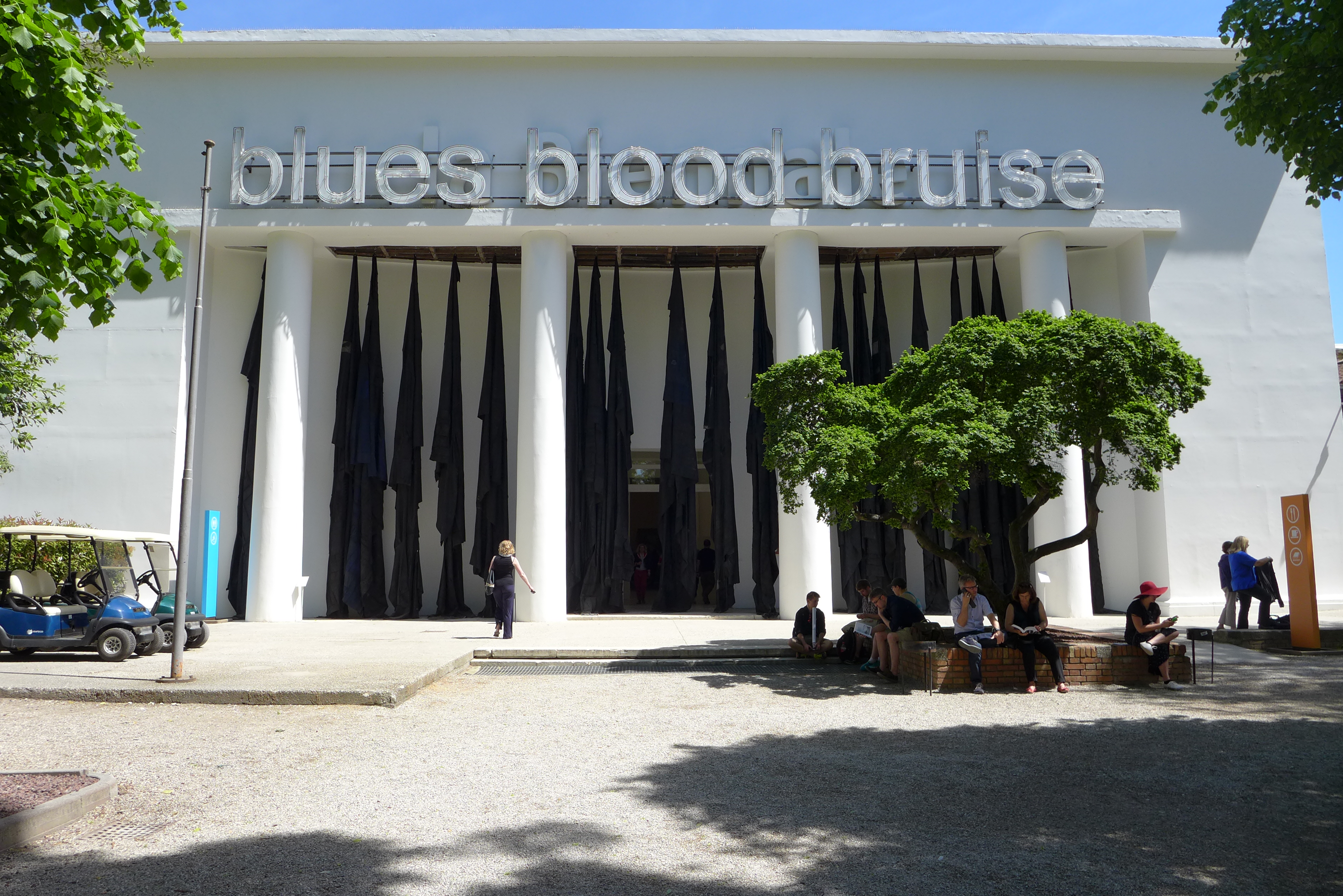 Künstler und Kuratoren sehen die Performance ebenso als eine ernstzunehmende und repräsentative Form, wie sie von einem größeren Publikum als solche angenommen und rezipiert wird. Sie gehört daher inzwischen zum festen Bestandteil von Biennalen zeitgenössischer Kunst, zumal sie sich dadurch noch von kommerziellen Kunstmessen abgrenzen können. Enwezor hat post-performative Tendenzen früh in den Ausstellungsraum gebracht. Kunst, Musik und theatrale Formate erachtet er auch in Venedig für tendenziell gleichrangig. Man darf die teerschwarz getränkten Stoffbahnen des jungen Kolumbianers Oscar Morino in den Interkolumnien der Fassade des Hauptpavillon auch als einen Theatervorhang deuten, der durch seinen morbiden Kontrast zum Weiß der faschistischen Front des Ausstellungsbaus in die Gegensätze dahinter einstimmen soll.