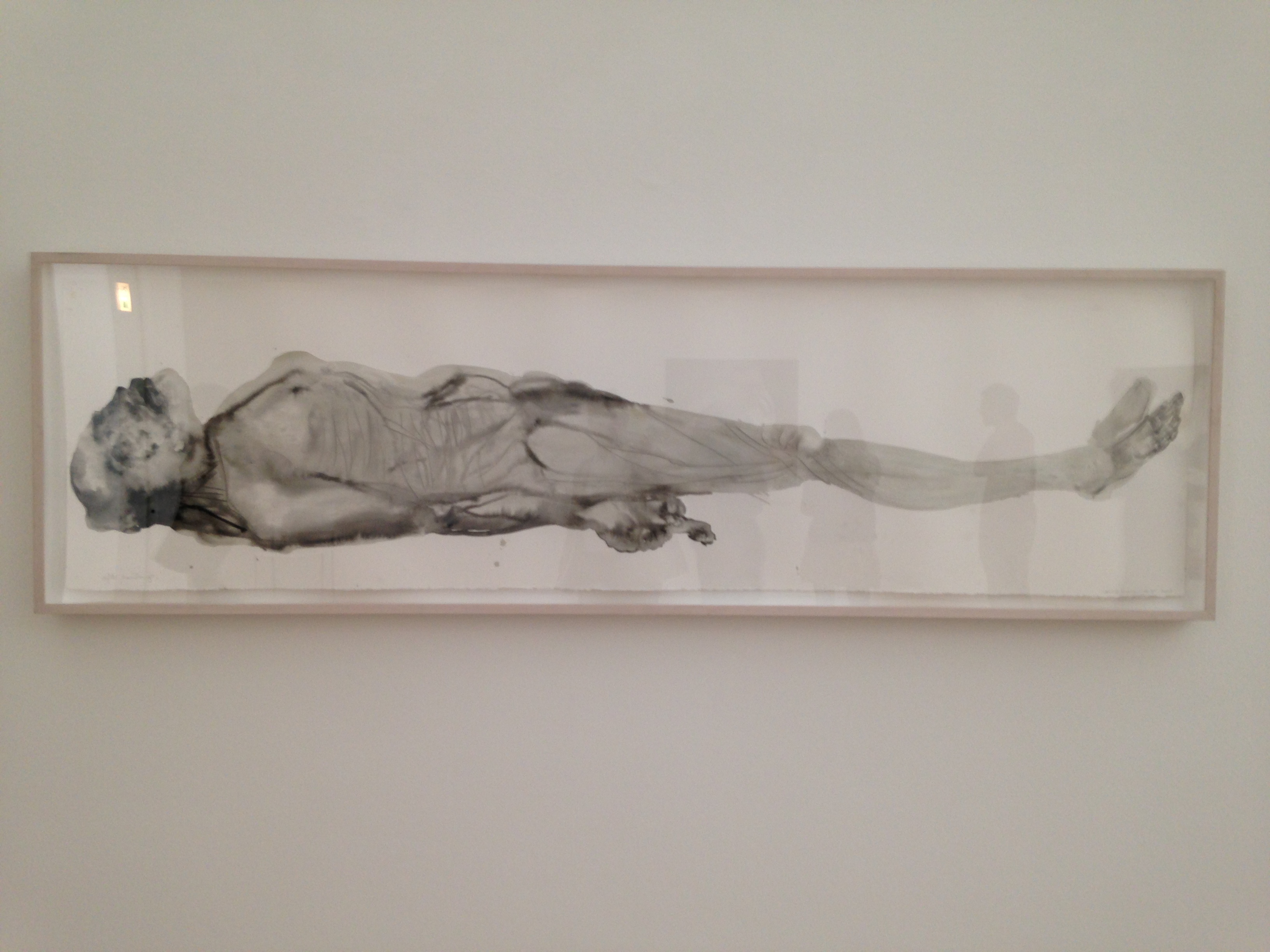 Die Stadt Basel besitzt eines der erschütterndsten Gemälde der Bildgeschichte: Hans Holbeins „Der Leichnam Christi im Grabe“ (1521/22). Wen wundert es, dass die 1953 in Kapstadt geborene Menschenmalerin Marlene Dumas immer wieder auf dieses Bild zurückkommt? Sie variiert es, wie in ihrer düsteren Vision von „Snowwhite and the Broken Arm“ (1988), oder sie nimmt den direkten Dialog auf, wie in ihrer monumentalen 62x230cm großen, in ihrem schnellen, diaphanen Farbauftrag fast zärtlichen Tusch- und Akrylzeichnung „After Painting“ (2003). Ihr Bild vermag den Alten Meister sogar darin zu übertreffen, dass der liegende tote Körper dem Papier, auf dem er gemalt wurde, wie abgetrotzt erscheint – Vergänglichkeit und Erlösung finden hier ihren materialen Widerhall. Es ist daher eine glückliche Fügung, wenn nun nach Stationen in Amsterdam und London die Werkschau „Marlene Dumas. The Image as Burden“ in der Basler Fondation Beyeler ihren triumphalen Abschluss findet.