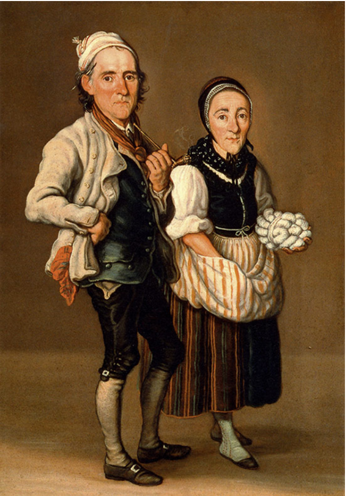 Sie müssen schon zur Zeit ihrer Entstehung merkwürdig gewirkt haben, ging es dem Künstler offenbar mehr um die charakteristische Physiognomik der Dargestellten, als um die landestypischen Trachten. Wie sonst ist zu erklären, dass ihre oft grob gezeichneten Gesichter wie Karikaturen viel zu groß für die schmächtigen Körper erscheinen?