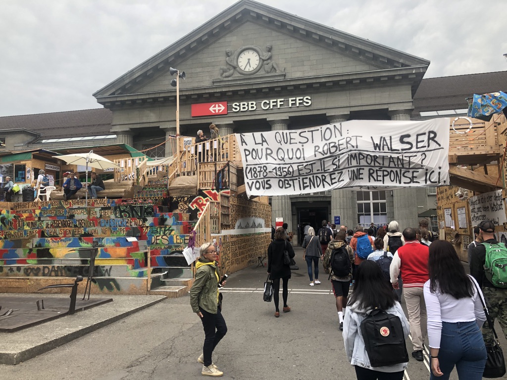 It fits, is harmonious, beautiful, in Swiss German said, urchig. We are talking about one of the most spectacular and aesthetically and socio-politically sustainable works of art of recent years: Thomas Hirschhorn’s Robert Walser sculpture on the station forecourt of Biel. Tomorrow Sunday is the end of the day. The dismantling will take about a month. Then none of it will be visible any more.