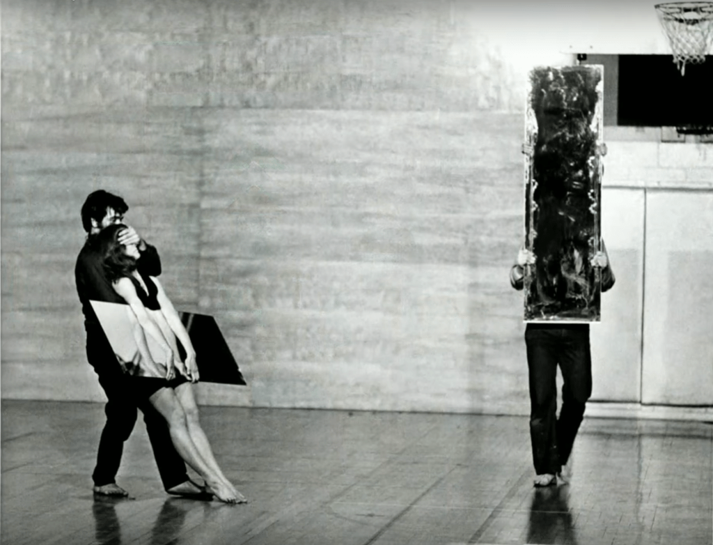 With „Delay, Delay“, however, a new, elusive art genre is emerging: in addition to black-and-white photographs, the live action is also documented by the almost 18-minute film „Songdelay“ (1973). The result is a strange performance hybrid that is difficult to categorize as „performance“, Kaprow’s „happening“ or the German „Fluxus action“. Jonas herself calls her works „Pieces“. Which puts them in a disciplinary direction, one that she feels drawn to from childhood on, to the theatre.