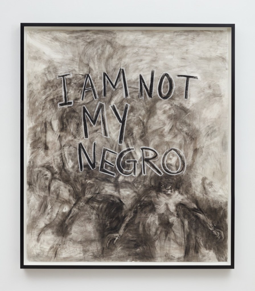 In „I AM NOT MY NEGRO!“, the artist 2020 then confronts her viewers in an equally large format in black chalk against a dark cloudy background, from which, difficult to make out, a female demon emerges. The provocative gesture of resistance – and the implicit appeal to the viewers not to let themselves become slaves to their own prejudices – can be read as a subtext and instruction for action for the entire exhibition and Kara Walker’s artistic work. In this, she is an enlightened artist through and through in the occidental tradition from Jacques Callot and William Hogarth to Honoré Daumier, Otto Dix and Maria Lassnig to Tomi Ungerer and Robert Crumb.