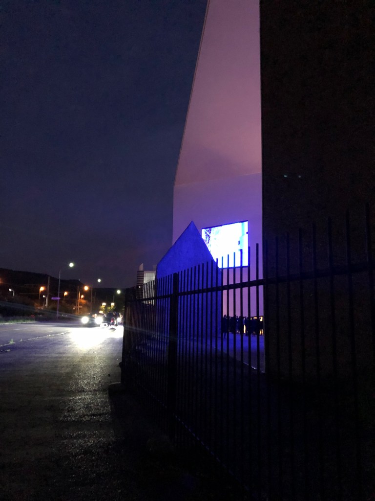 Die Bandbreite der gezeigten Kunst steckte Carmine schon zum Auftakt ab: Rechts mit einem begehbaren Trocken-Brot-Hexenhäuschen aus der Hand des Schweizer Großkünstlers Urs Fischer, das über die Messetage auf Perserteppiche vor sich hin bröseln durfte; wir können darüber sinnieren, ob damit ein Brot-für-die-Welt-Appell verbunden war, oder eine Mahnung zum Maßhalten in umständehalber mageren Messetagen. Links dann ein kubisches Raumgehege aus Stahlstangen und transparenten Stoffbezügen als Wände, die mit der Architektur an die Fondation Beyerle und Post-koloniale Diskurse erinnern wollte, The Hunter’s Dream, (2020-21) des in Lissabon lebenden Venezolaners Juan Araujo. Affirmation oder Kritik? So ganz auszumachen war das bei Araujo nicht. Und in der Mitte? Bilderflut mit Le Soleil Toujours, 2020 der sechsundneunzigjährigen Etel Adnan, bunt und lebensfroh auf einer Keramikfließenmauer und zum medialen und generationellen Kontrastprogramm eine 9m lange und 3m hohe LED-Wand mit integrierten analog gemalten Bildern des Österreichers Philipp Timischl, Jahrgang 1989.